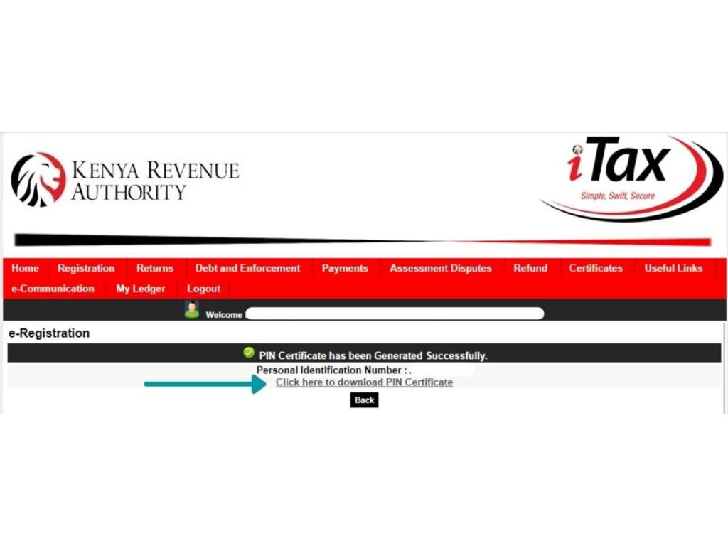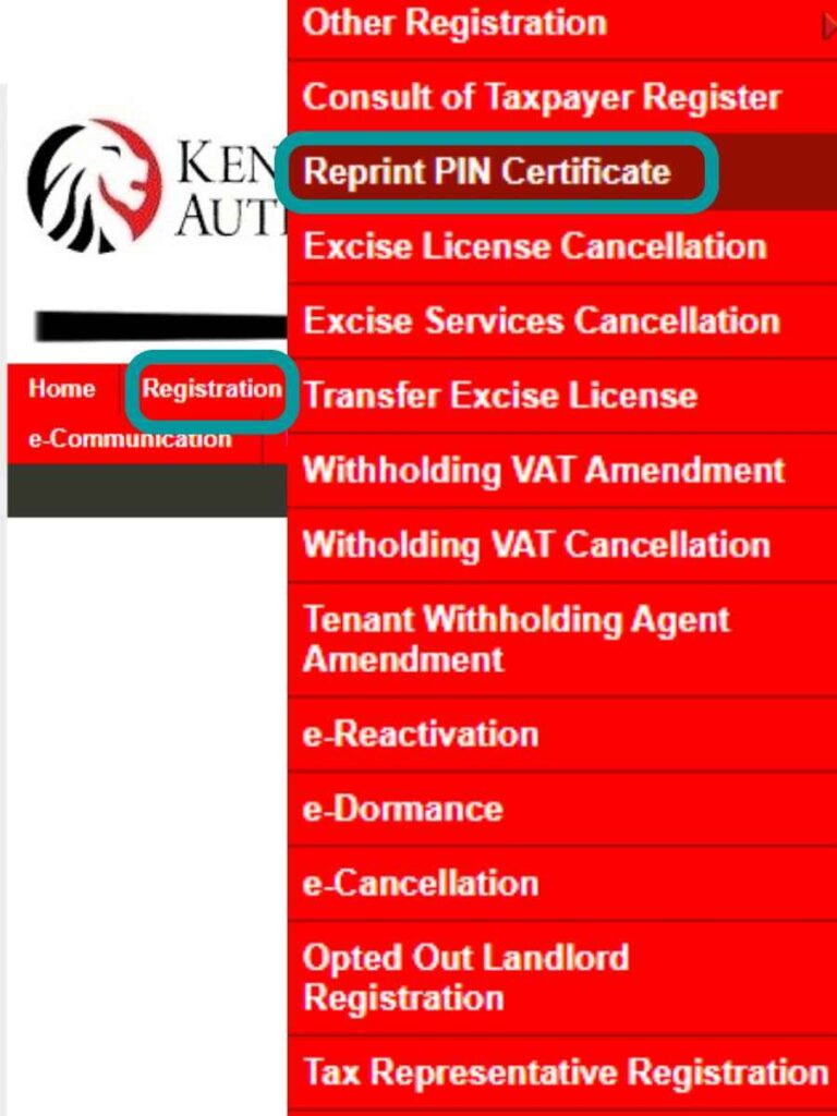 Reprint the KRA PIN certificate